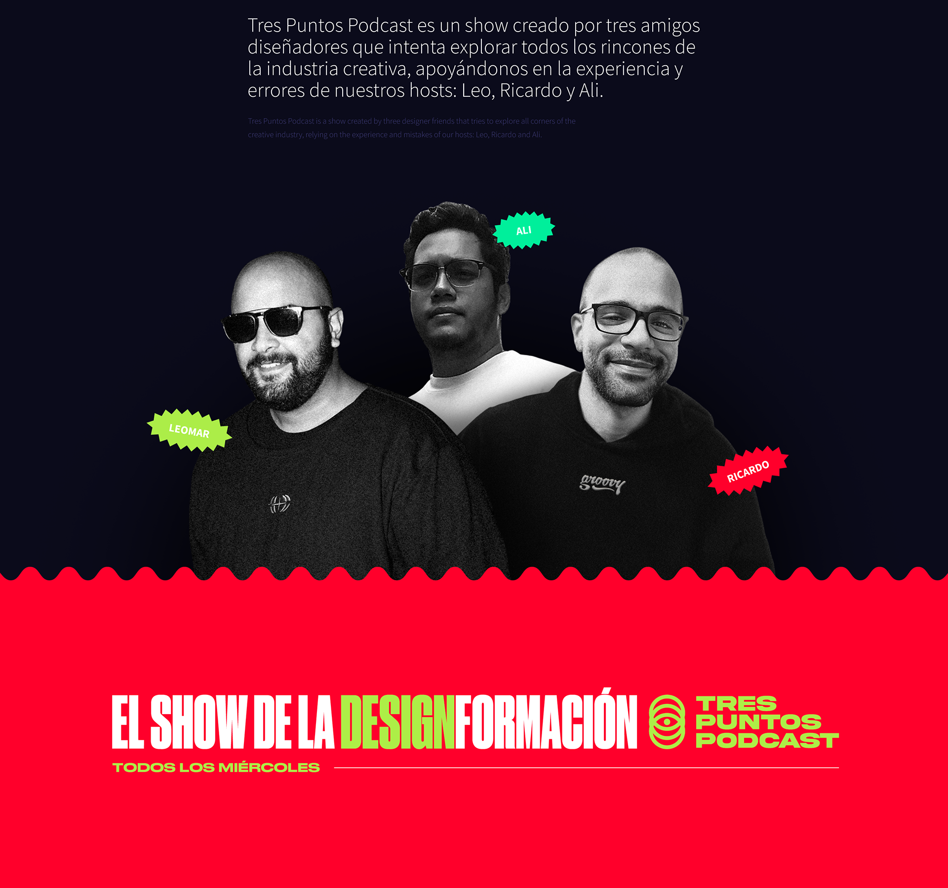 Tres Puntos Podcast es un show creado por tres amigos diseñadores que intenta explorar todos los rincones de la industria creativa, apoyándonos en la experiencia y errores de sus anfitriones Leo, Ricardo y Ali.